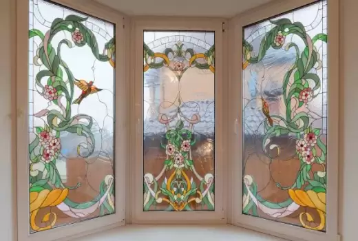 Витражи на окнах помогают подчеркнуть индивидуальный дизайн помещения, превращают его в необычный элемент интерьера. Если раньше их собирали из цветного стекла, использовали в качестве основы тонкие листы металла, то сегодня применяется самоклеящаяся витражная пленка. Основные ее характеристики – экологичность, стойкость цвета под воздействием солнца.